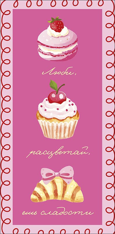 Открытка-конверт Люби, расцветай, ешь сладости, 8*17 см, 5 шт.