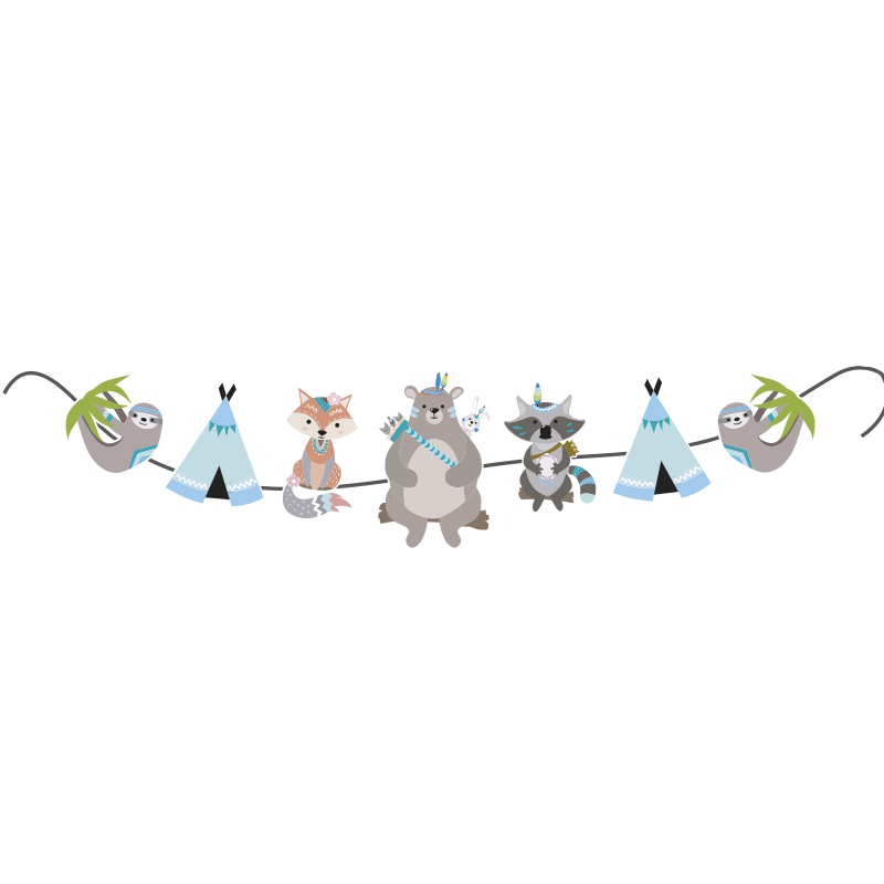 Гирлянда бумажная "С Днем рождения!" Зверята Бохо (фигурная форма), 2,2 м