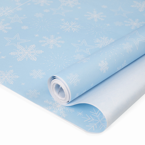 Упаковочная бумага крафт, Снежинка, Белый/Голубой, 70 г, 0,7*9 м