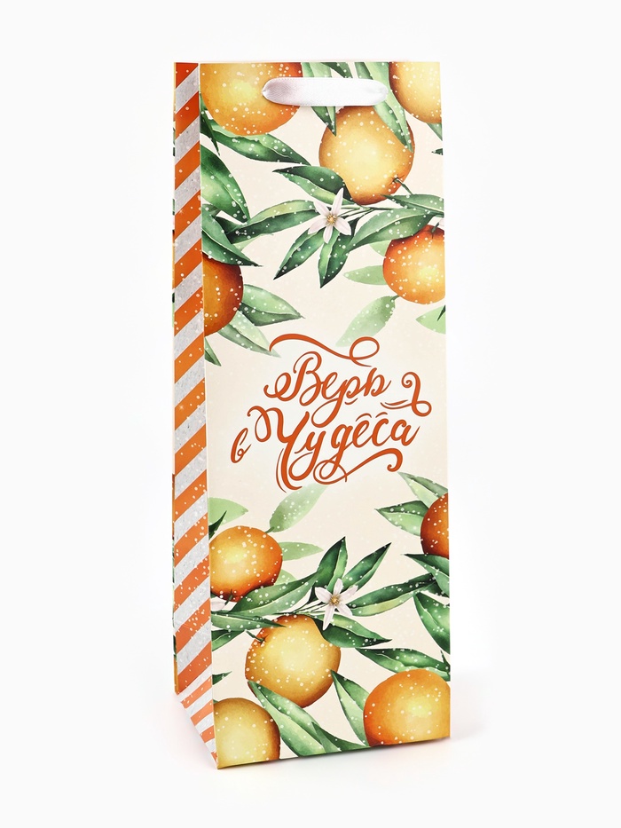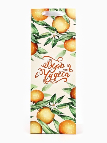 Пакет подарочный под бутылку, «Апельсины», 13*36*10 см (Д*В*Ш)