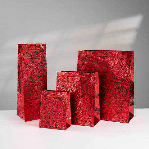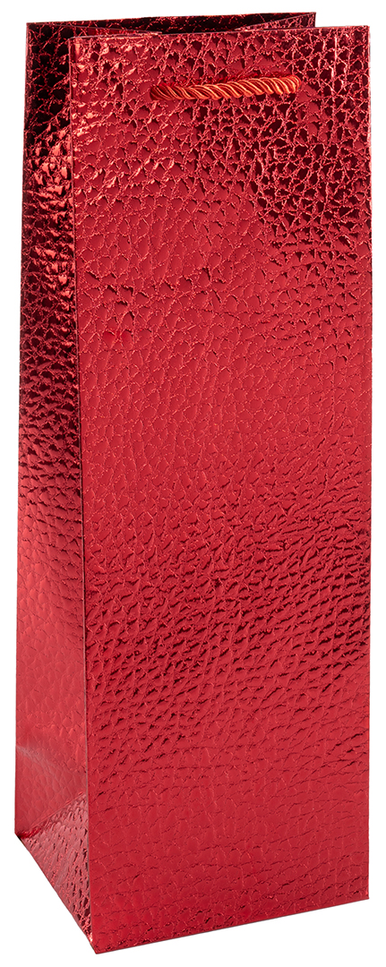 Пакет подарочный под бутылку, Фактура кожи, Красный, Металлик, 12*35*10 см (Д*В*Ш)