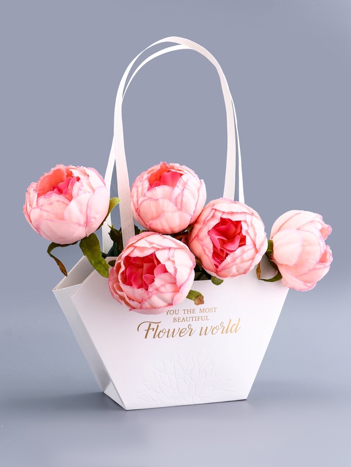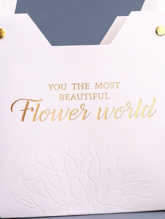 Сумка для цветов влагостойкая, Тиснение «Самой прекрасной», белая, 23*15*9 см (Д*В*Ш), 1 шт.