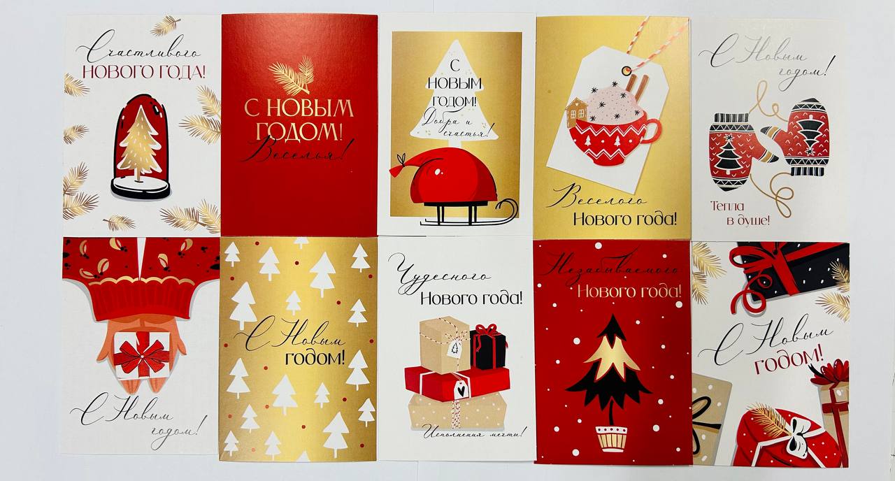 Мини-открытка "С Новым годом", 7*10 см, 10 шт