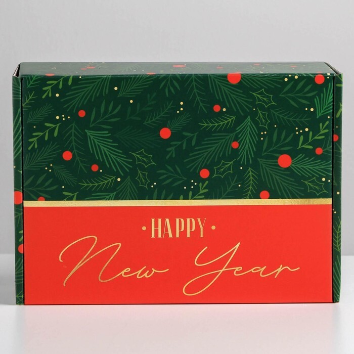 Коробка сборная одиночная Прямоугольник, «С Новым годом», 30*22*9 см