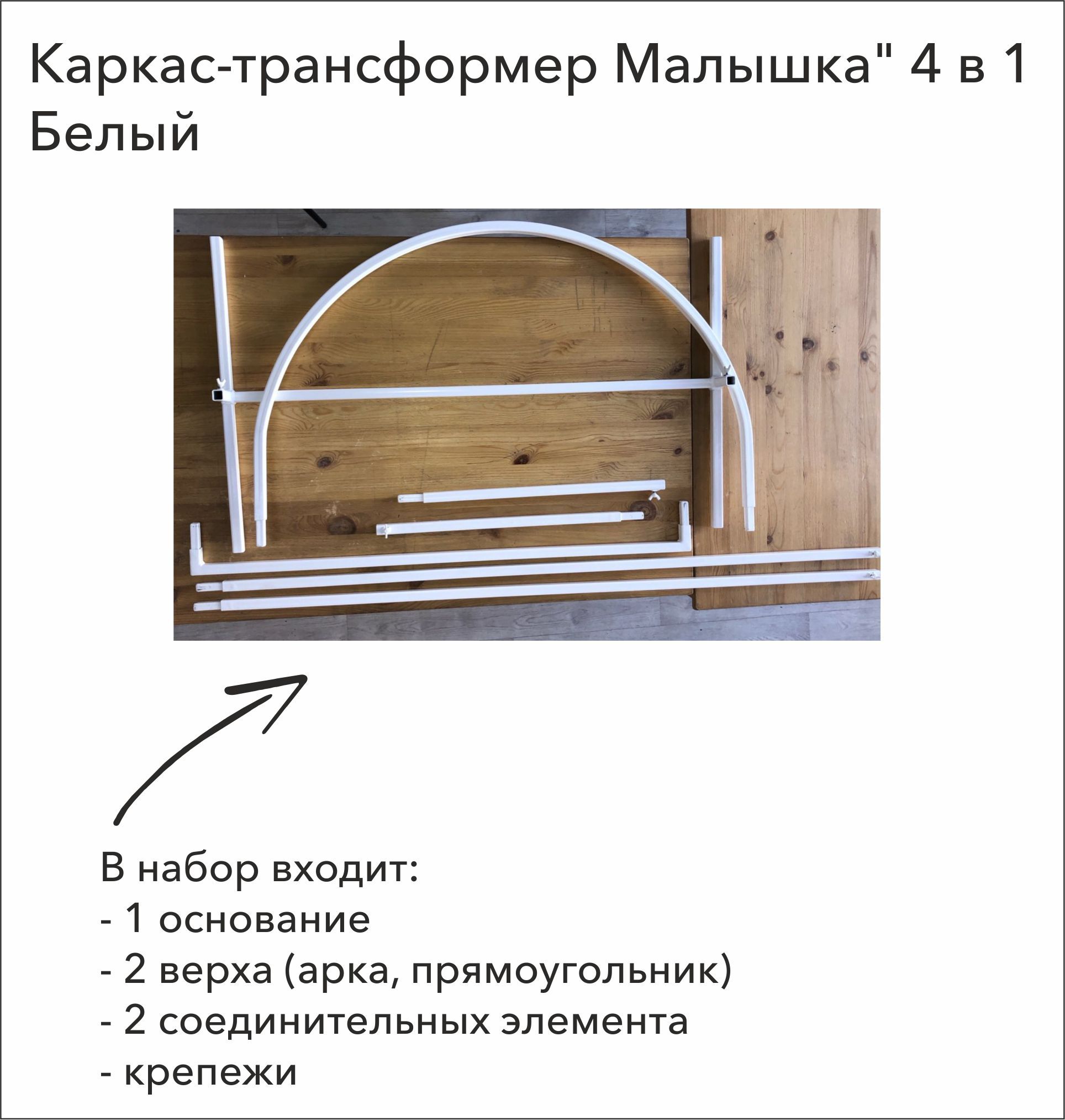 ПРОКАТ Каркас-трансформер "Малышка" 4 в 1, Арка (2,02*1 / 2,52*1 м) / Прямоугольник (1,5*1 / 2*1 м) (В*Ш), Белый