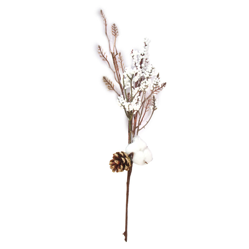 Ветка искусственная, Хлопок и шишка, 45 см, 1 шт.