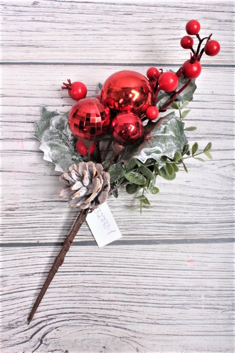Ветка искусственная, с Шариками и шишкой, 30 см, 1 шт.