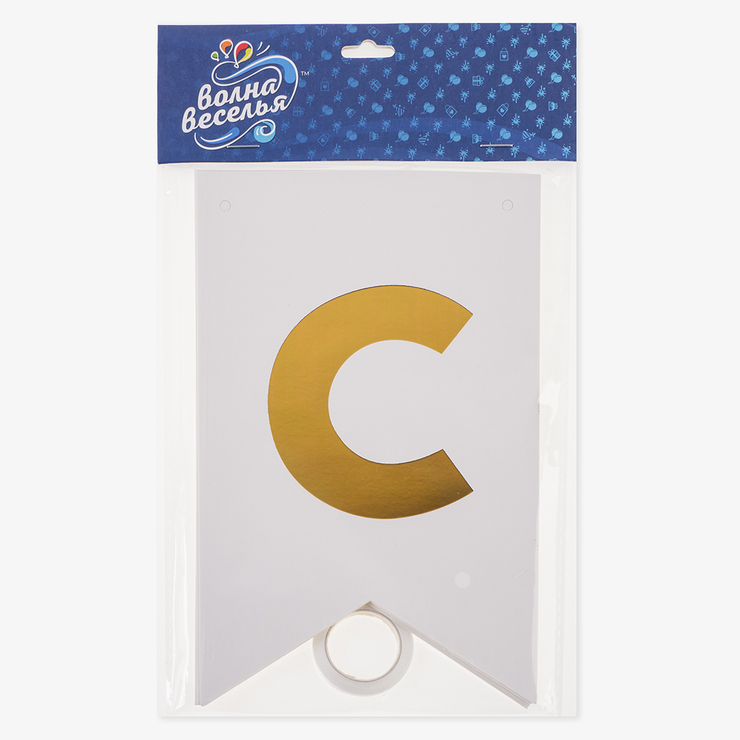 Гирлянда-Флажки, С Новым Годом, Белый/Золото, Металлик, (13*20 см)*5 м, 1 шт.