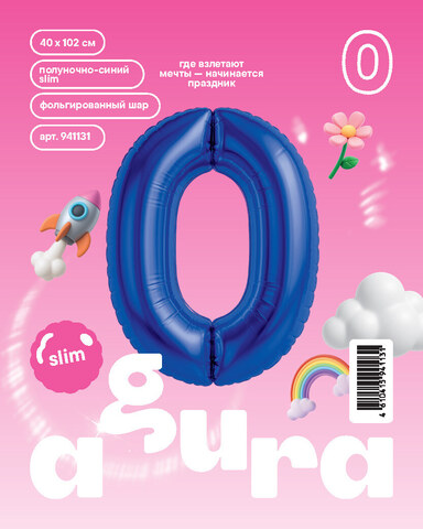 Аг 40''/102 см, Цифра Slim Полуночно-синий "0" (в упаковке)
