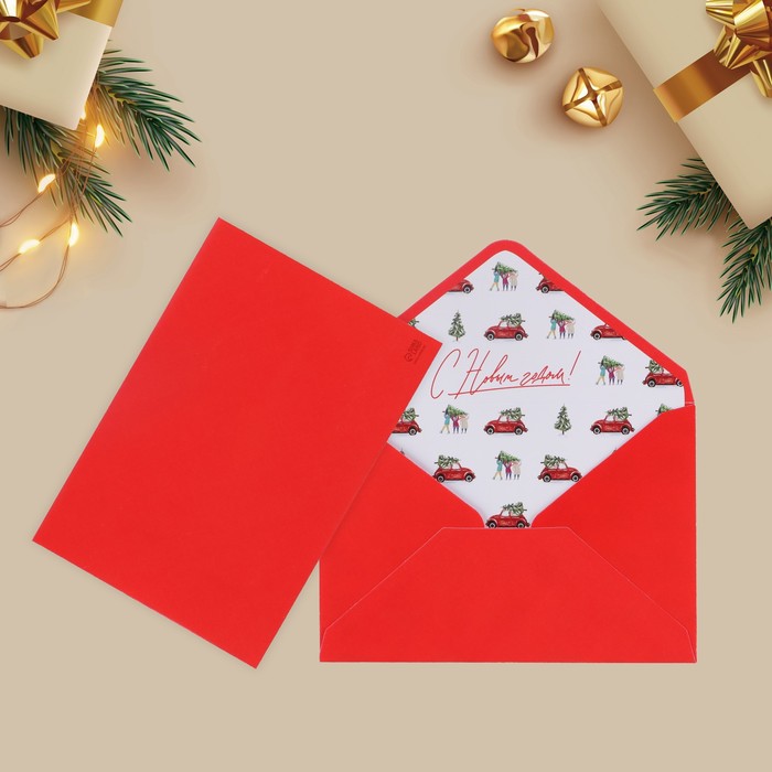 Конверт бумажный, Новогодние машинки, Красный, 16*11 см, 1 шт.
