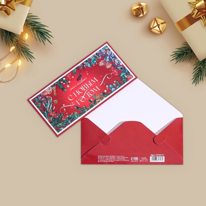 Открытка-конверт, «Новогодний», 16,5*8 см, 5 шт.