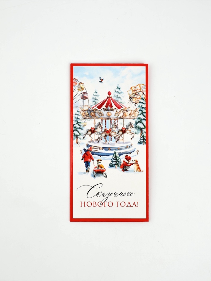 Открытка-конверт, «Новый год 2026», карусель из лошадей, 16,5*8 см, 5 шт.