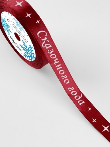 Лента Атласная (1,5см*23±1м), «Сказочного года», Красная, 1 шт.