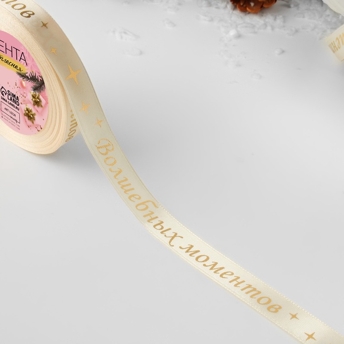 Лента Атласная (1,5см*23±1м),«Волшебных моментов», Бежевая, 1 шт.