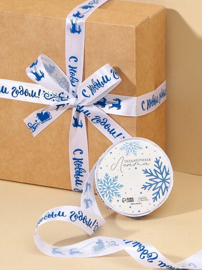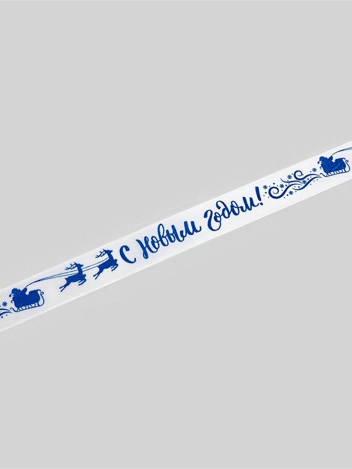 Лента Атласная (1,5см*5м), «С Новым годом!», Белая, 1 шт.