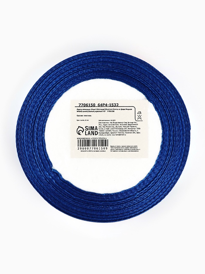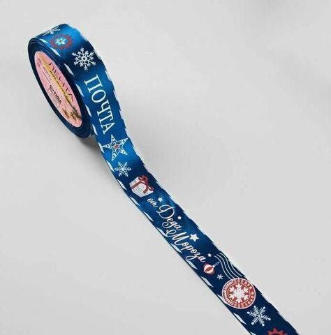 Лента Атласная (2,5см*23±1м), «Почта от Деда Мороза», Синяя, 1 шт.