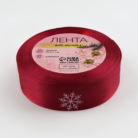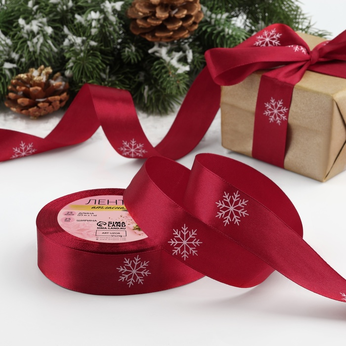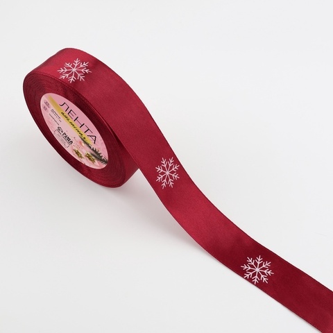Лента Атласная (2,5см*23±1м), «Снежинки», Красная, 1 шт.
