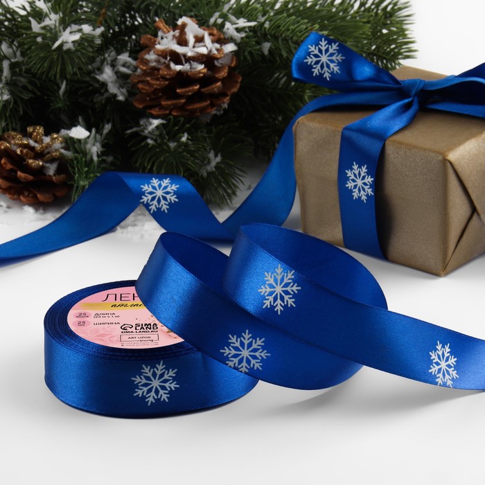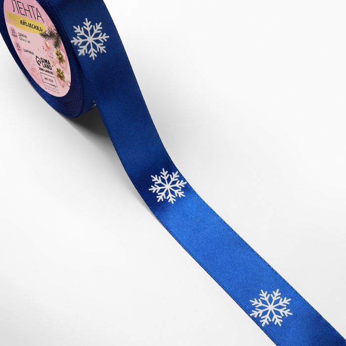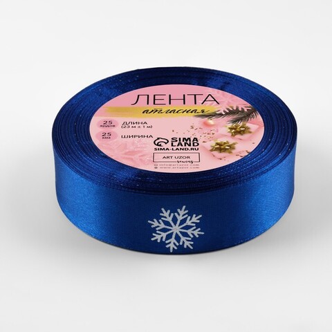 Лента Атласная (2,5см*23±1м), «Снежинки», Синяя, 1 шт.