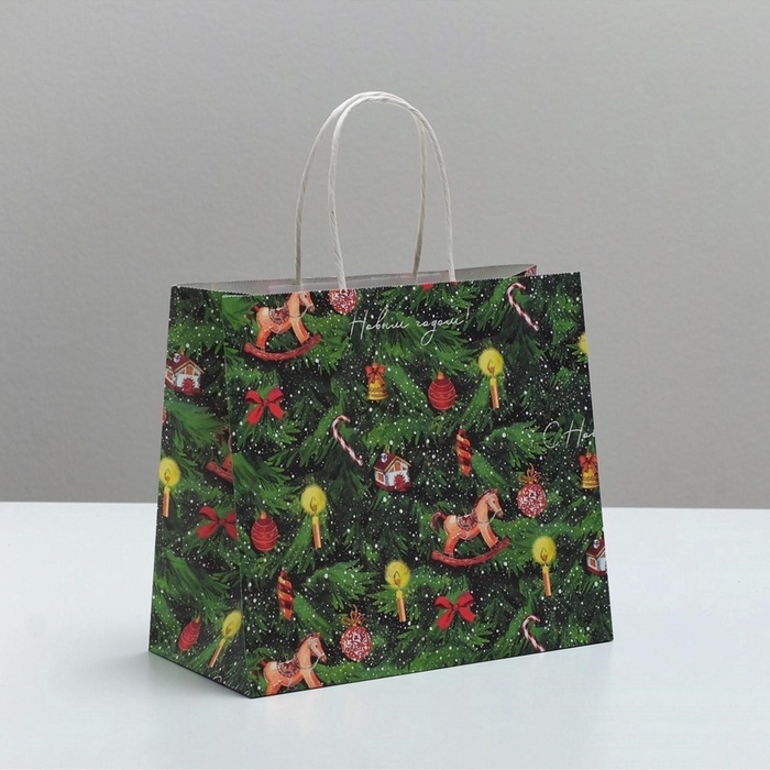 Пакет подарочный S горизонтальный, крафт, «Новогодняя елочка», 22*25*12 см (Д*В*Ш), 1 шт.