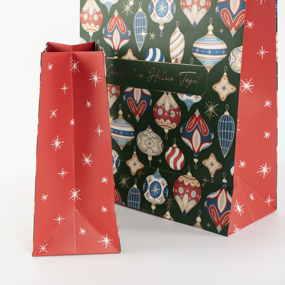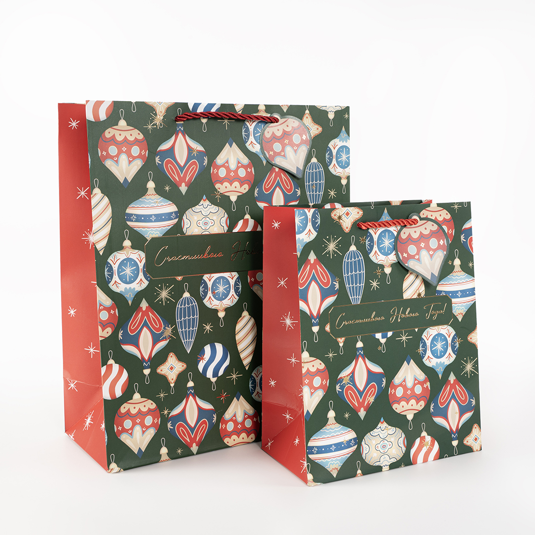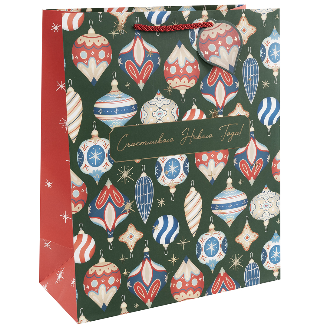 Пакет подарочный S вертикальный, Счастливого Нового Года! (елочные шары), Металликк, 18*23*10 см (Д*В*Ш), 1 шт.