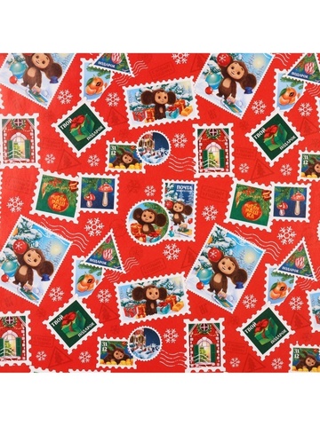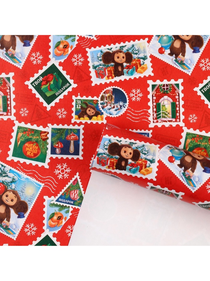 Упаковочная бумага глянцевая, «Новый год, Чебурашка", 0,7*1 м, 5 листов