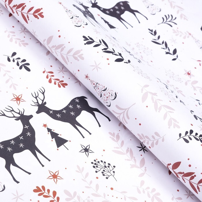 Упаковочная бумага глянцевая, «Олени», двухсторонняя, 0,7*1 м, 5 листов