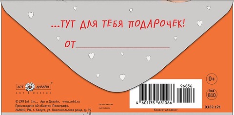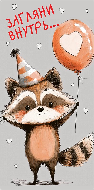 Открытка-конверт Загляни внутрь, 8*17 см, 5 шт.