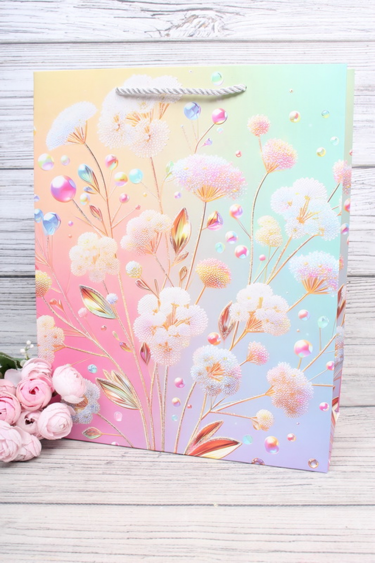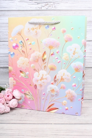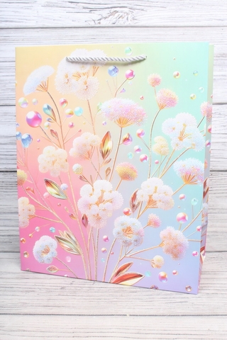 Пакет подарочный M вертикальный, Цветы прелесть, 26*32*12 см (Д*В*Ш), 1 шт.