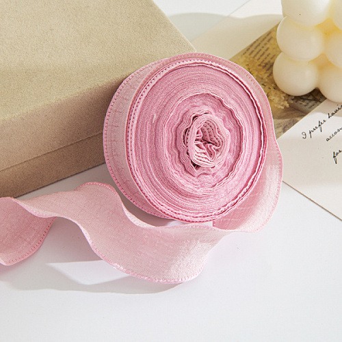 Лента полиэстер жатая с волнистым краем (2,5 см*9,14 м), Розовый