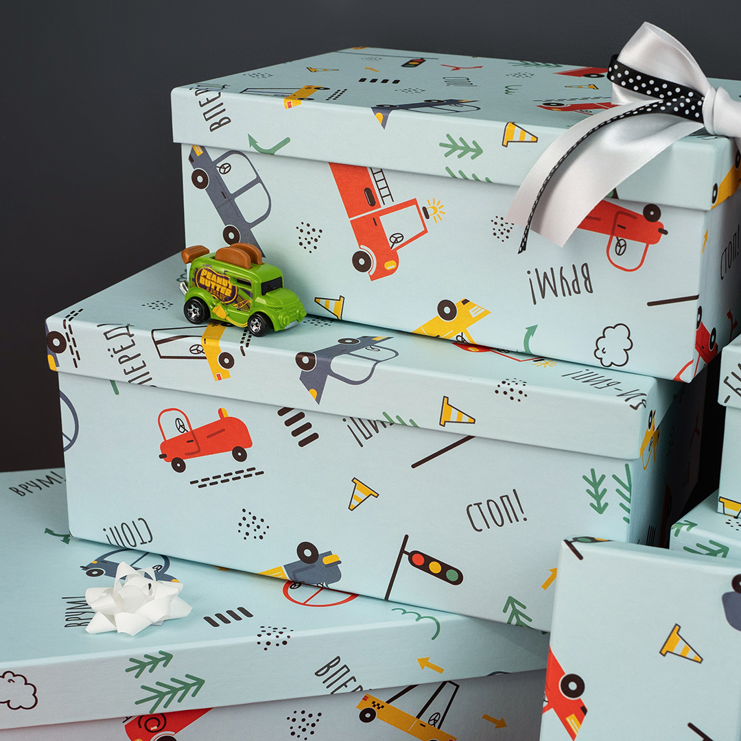 Коробка одиночная, Прямоугольник, Машинки, 19*13*8 см