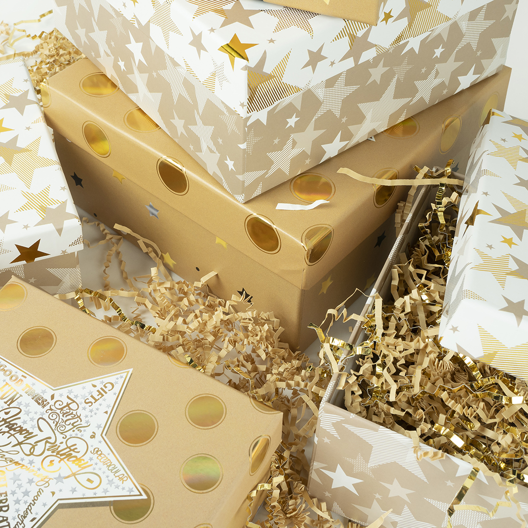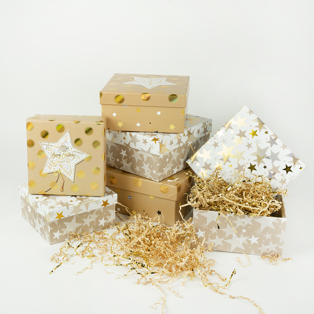 Коробка одиночная, Квадрат, Звезда и горошек, Бежевый, 18*18*8,5 см, 1 шт.