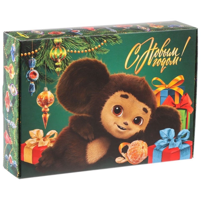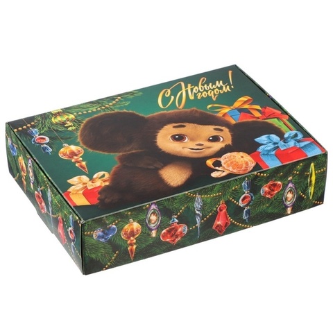 Коробка самосборная одиночная Прямоугольник, 21*15*5 см, «С Новым годом!», Чебурашка, 1 шт.