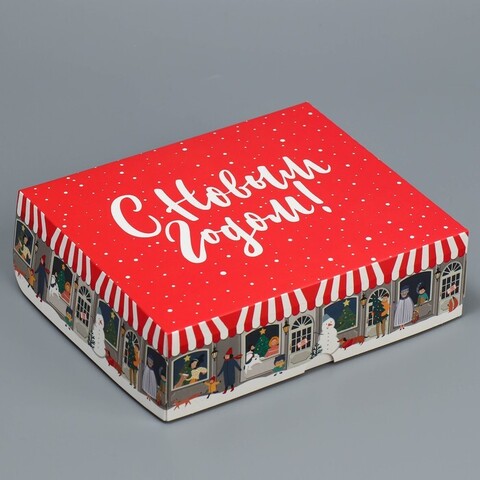 Коробка сборная одиночная Прямоугольник, «С Новым годом», 20*17*6 см
