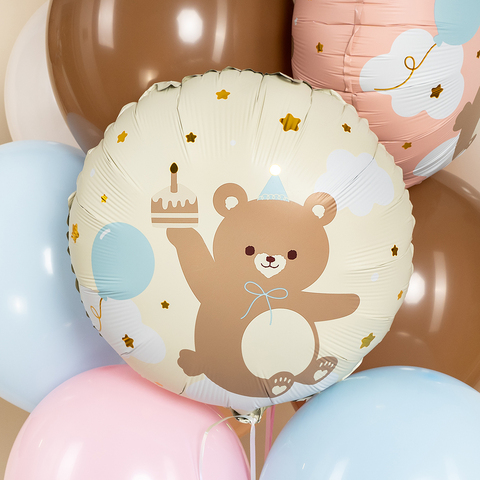 К 18''/46 см, Круг, Мишка с кексиком, Кремовый, 1 шт.