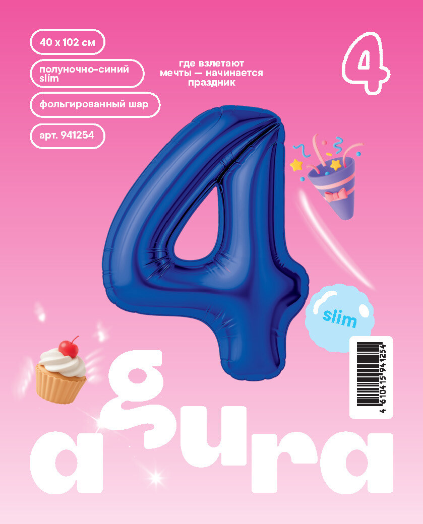Аг 40''/102 см, Цифра Slim Полуночно-синий "4" (в упаковке)