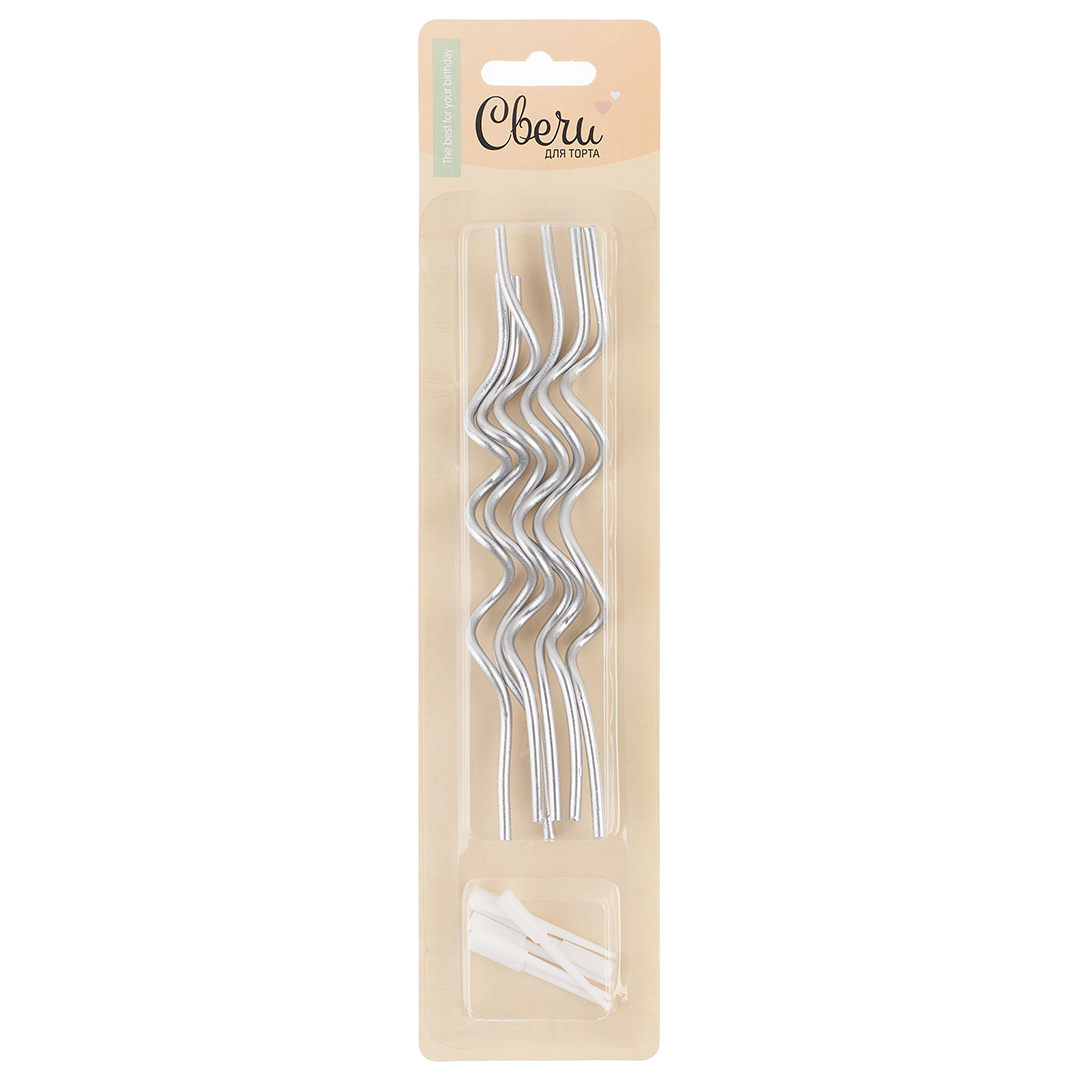 Свечи Спирали Серебро, Металлик с держателем, 0,3*14,5 см, 6 шт.