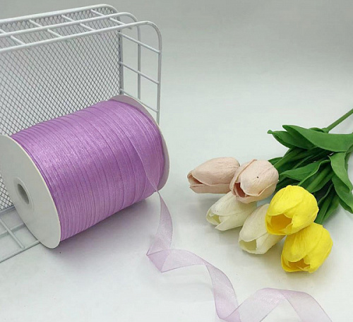 Лента органза на катушке (1,0см*457м), Нежно-Сиреневый, 1 шт.