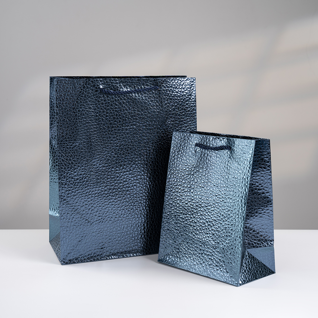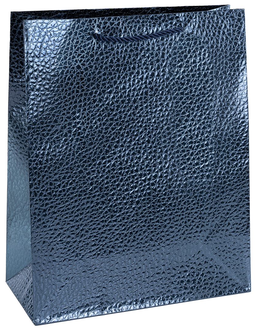 Пакет подарочный M вертикальный, Фактура кожи, Дизайн №4, Синий, Металлик, 26*32*12 см (Д*В*Ш), 1 шт.