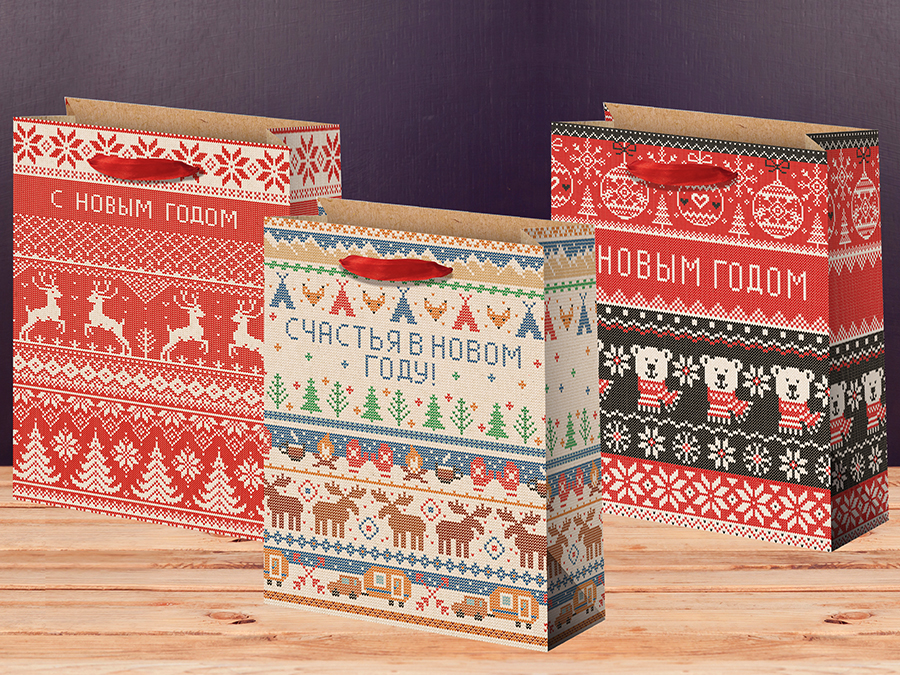 Пакет подарочный M вертикальный, Новый Год, Скандинавские мотивы, МИКС, 26*32*13 см (Д*В*Ш), 1 шт.