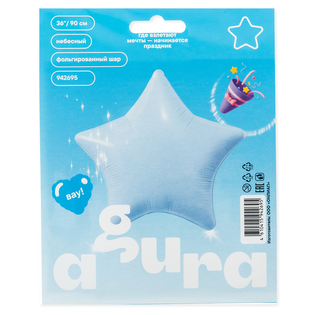 Аг 36"/91 см, Звезда, Небесный, 1 шт. (В упаковке)