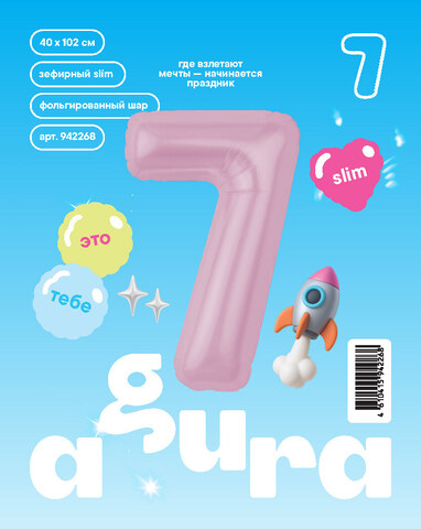 Аг 40''/102 см, Цифра Slim Зефирный "7" (в упаковке)