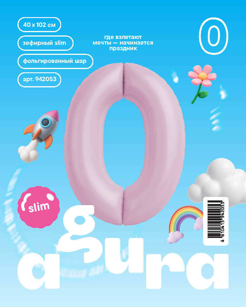 Аг 40''/102 см, Цифра Slim Зефирный"0" (в упаковке)