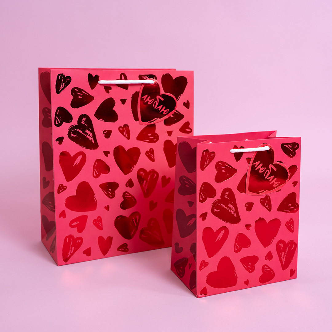 Пакет подарочный M горизонтальный, Множество сердец, Металлик, 32*26*12 см (Д*В*Ш)