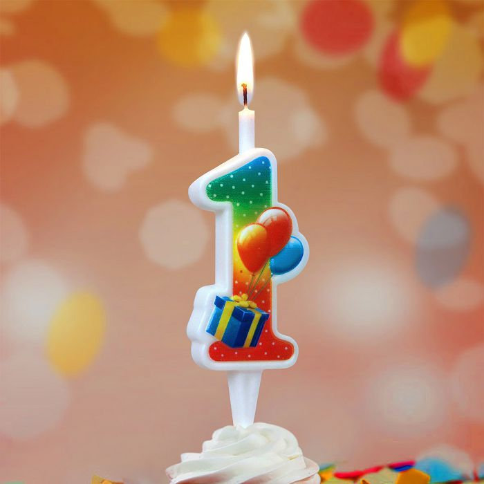 Свеча-цифра тортовая "С подарком" 1, 12 см, 1 шт.