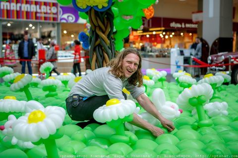 Торжественная церемония открытия гигантской фигуры из воздушных шаров, которую создали аэродизайнеры из разных городов Сибири под руководством тренеров Гвидо Верхоева и Анастасии Сокол.